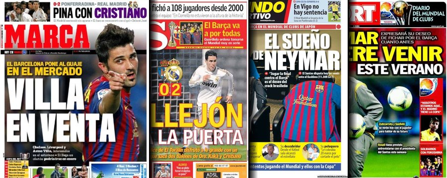 Portadas de las cuatro principales cabeceras de la prensa deportiva española.