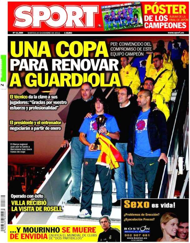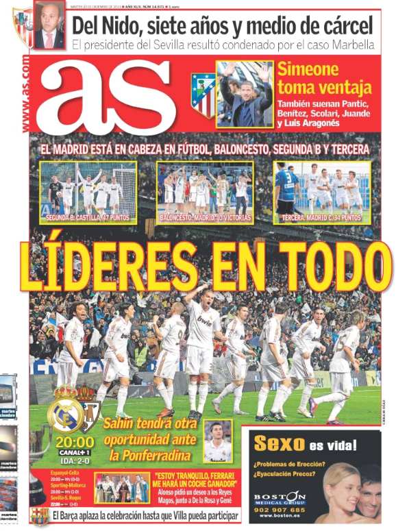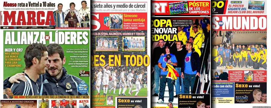 Portadas de las cuatro principales cabeceras de la prensa deportiva española.