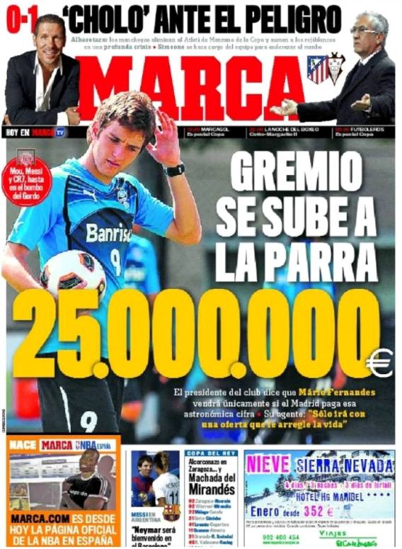 "Gremio se sube a la parra: 25.000.000 €"