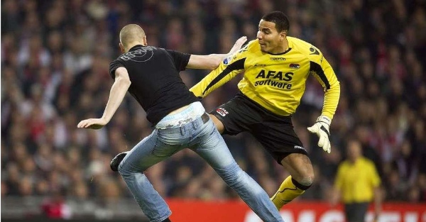 En Holanda, durante el partido entre el Ajax y el AZ Alkmaar, el portero del conjunto visitante, el costarricense Esteban Alvarado, fue expulsado por agredir a un hincha que había saltado al campo para golpear al guardameta.