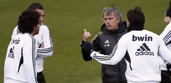 Casillas, Adán y Mejías han realizado trabajo específico junto al preparador de porteros Silvino Louro, mientras que el resto de jugadores, tras realizar el calentamiento con estiramientos y ejercicios de potenciación muscular bajo la batuta del preparador físico Rui Faria, fueron divididos en dos grupos para trabajar con balón. Con peto rojo estuvieron Albiol, Carvalho, Coentrao, Altintop, Sahin, Xabi Alonso, Granero, Kaká, Di María y Benzema, mientras que de blanco se vistieron Pepe, Varane, Marcelo, Arbeloa, Lass, Khedira, Özil, Callejón, Cristiano Ronaldo e Higuaín.