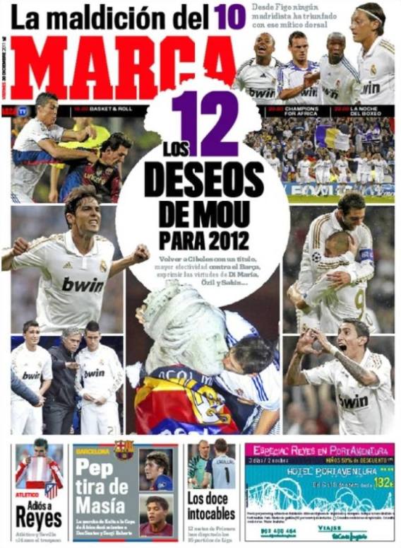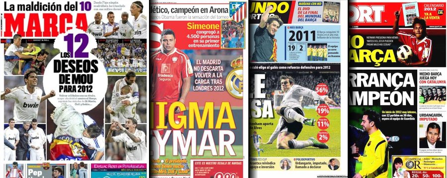 Portadas de las cuatro principales cabeceras de la prensa deportiva española.