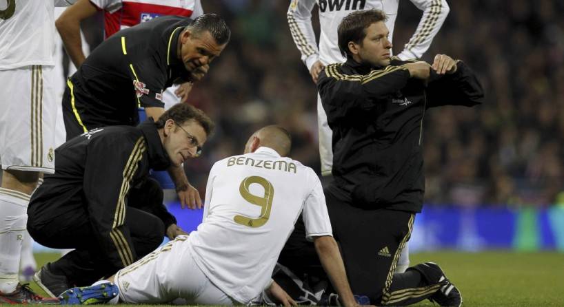 El delantero del Real Madrid, el francés Karim Benzema, sufrió un golpe en un sóleo, fue sustituido por "precaución" y el cuerpo técnico de su equipo confía en que esté en condiciones de jugar el encuentro de vuelta de la Copa del Rey el martes ante el Málaga.