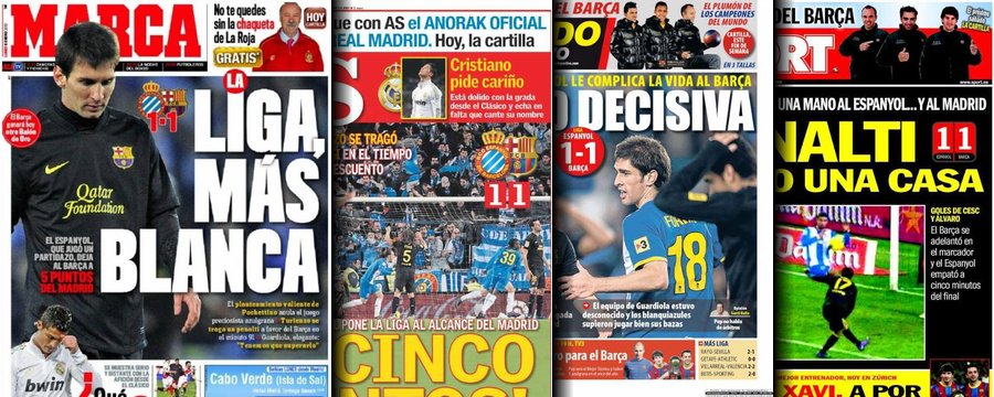 Portadas de las cuatro principales cabeceras de la prensa deportiva española.