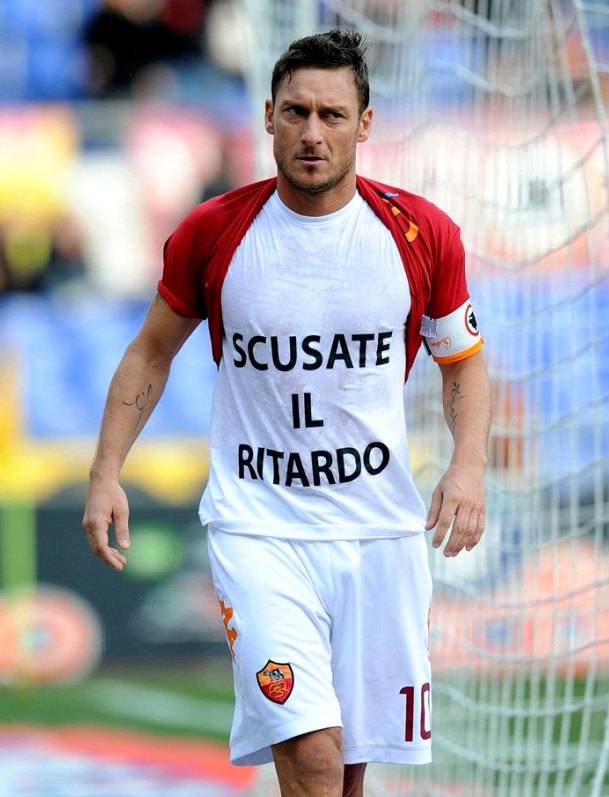 El partido ha servido, además, para que el capitán de la Roma, Francesco Totti, se reconciliara con el gol siete meses después de su último tanto. Una tardanza de la que el propio jugador era consciente, pues para celebrar el tanto mostró una camiseta en la que se podía leer un mensaje dirigido a su afición: "Perdonad el retraso".