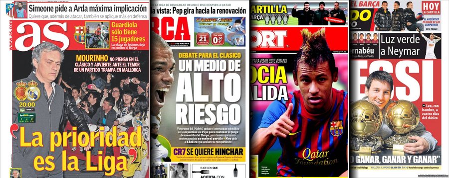 Portadas de las cuatro principales cabeceras de la prensa deportiva española.