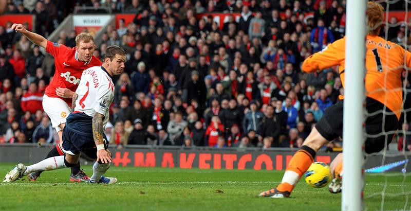 Paul Scholes, el centrocampista de 37 años del Manchester United, ha vuelto de su retiro futbolístico para encarrilar una victoria frente al Bolton (3-0) que añade de nuevo presión sobre sus vecinos del Manchester City, líderes con los mismos puntos que los diablos rojos a la espera de jugar el lunes.