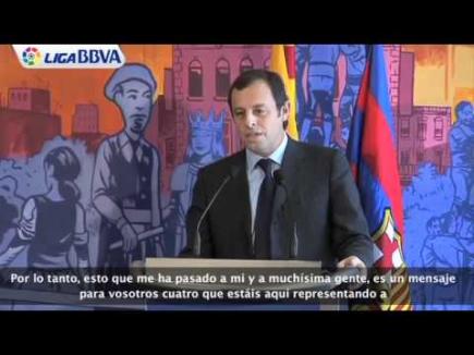 Sandro Rosell ha presentado este lunes, en las instalaciones de la nueva Masía, un plan de formación cultural para los jóvenes residentes del centro residencial barcelonista.