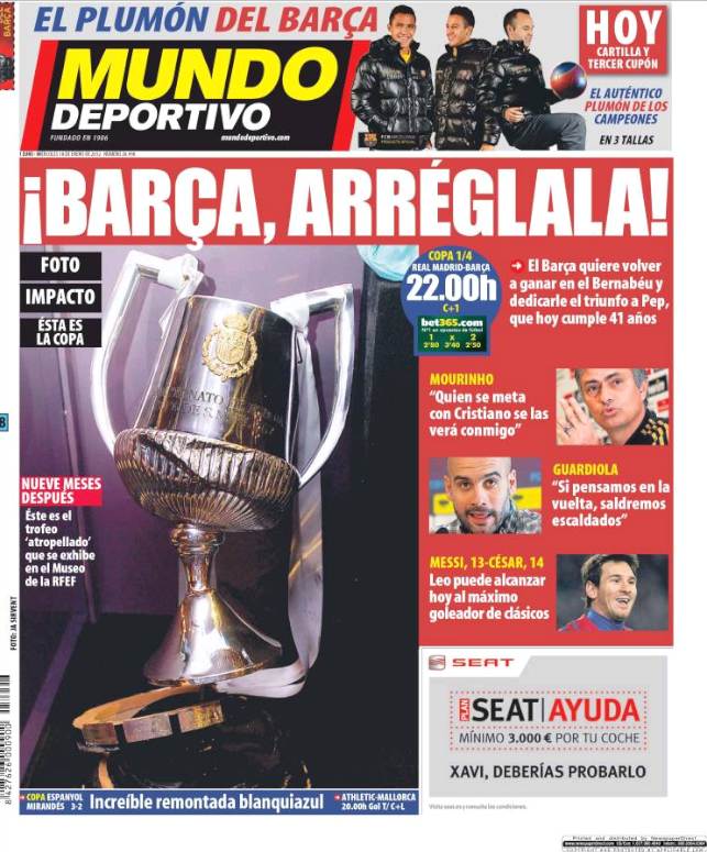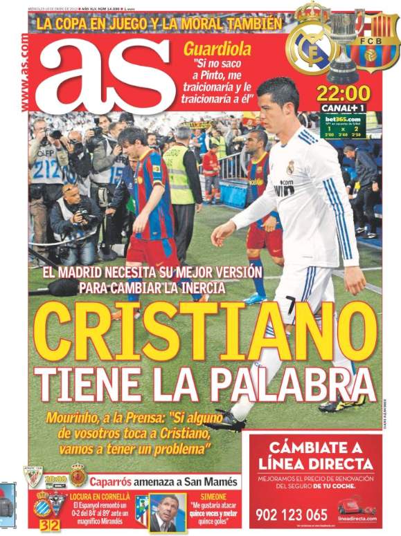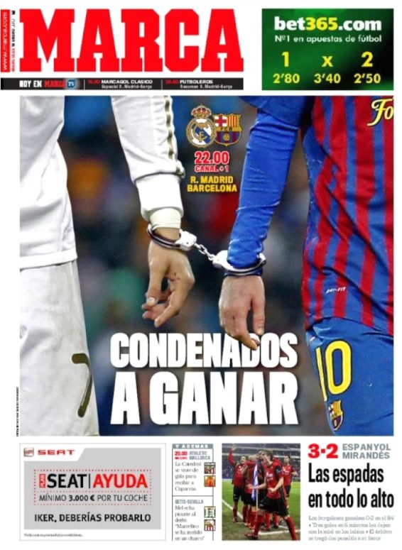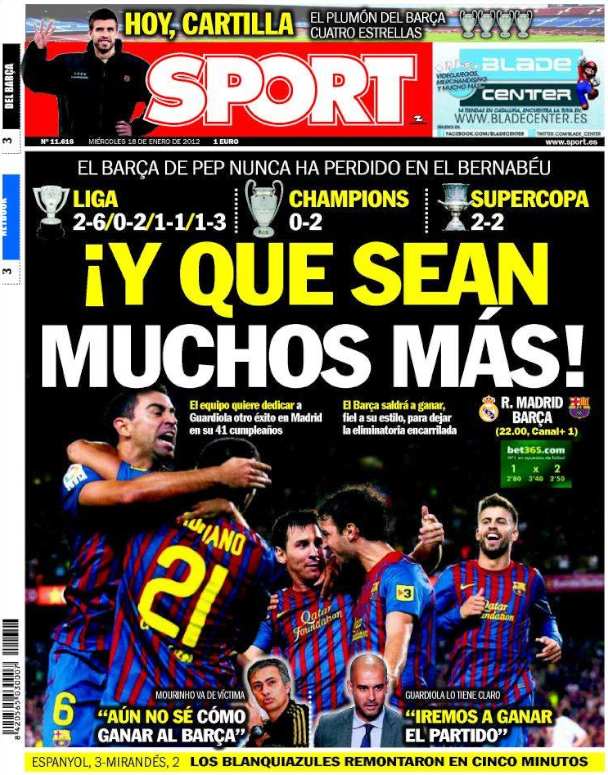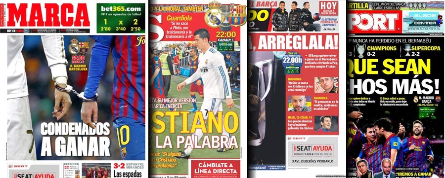 Portadas de las cuatro principales cabeceras de la prensa deportiva española.