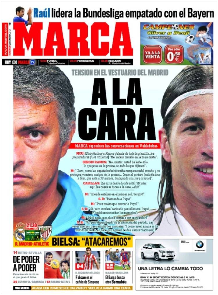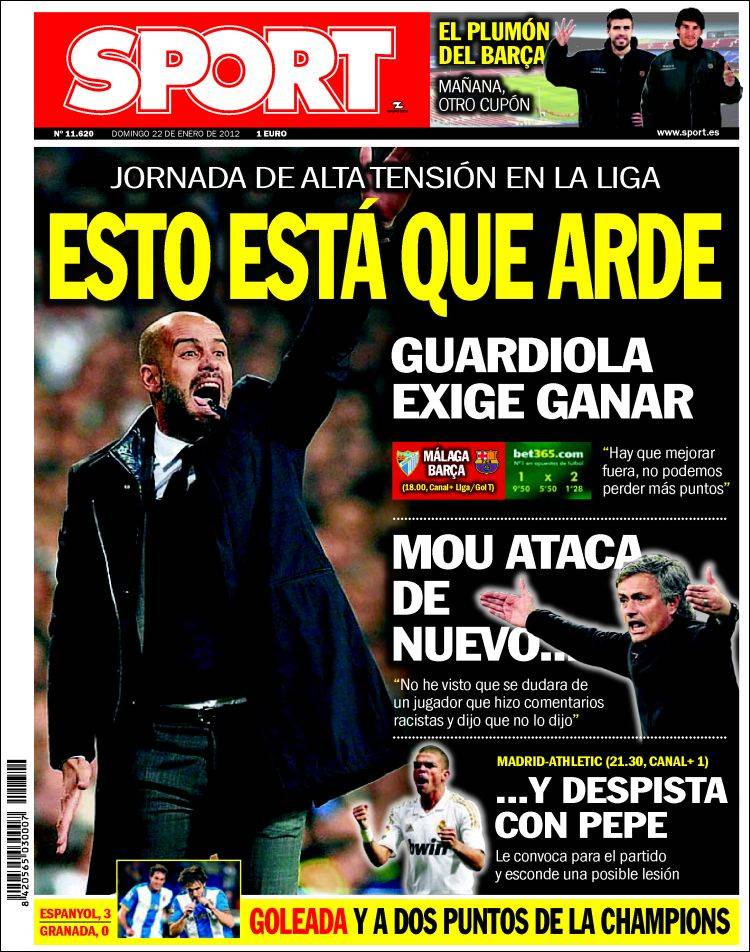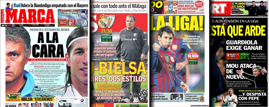 Portadas de las cuatro principales cabeceras de la prensa deportiva española.