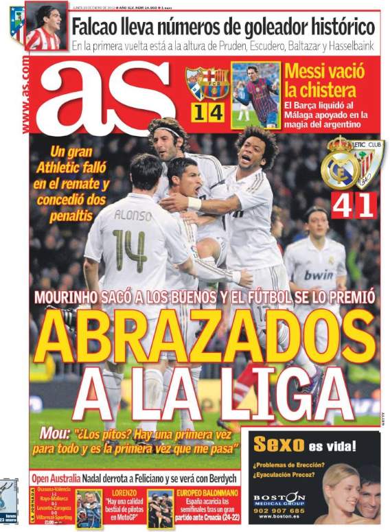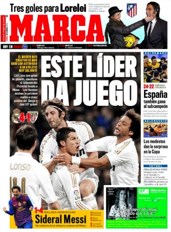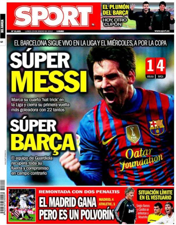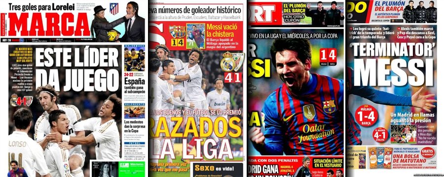 Portadas de las cuatro principales cabeceras de la prensa deportiva española.