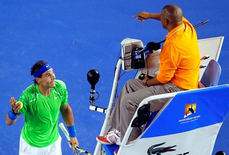Rafael Nadal no ha tenido un partido fácil en los cuartos de final del Abierto de Australia. Tomas Berdych se lo ha puesto muy difícil. Además, no solo ha tenido que sobreponerse al rival, sino que también se las ha visto con el juez de silla, Carlos Bernardes. El tenista español tuvo un par de enfrentamientos con el árbitro al igual que en el año 2010, cuando, precisamente también en un partido ante Berdych, Bernardes cantó mal una jugada perjudicando al numero dos del mundo.