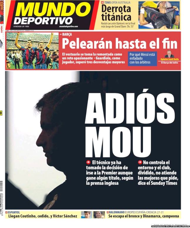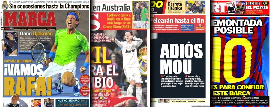 Portadas de las cuatro principales cabeceras de la prensa deportiva española.
