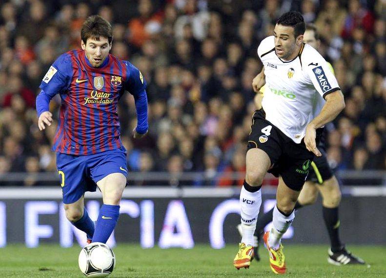 Desde el principio se vio que el Barça no jugaba como en otras ocasiones. Le faltaron velocidad y fluidez a la hora de mover el balón, entre otras cosas porque el Valencia ejerció una buena presión en el centro del campo. Los futbolistas locales corrían con sentido, apretando las tuercas a un rival al que le costaba salir de su parcela. Aún así, la primera ocasión de la noche fue para los visitantes en un lanzamiento de falta a cargo de Messi que salió desviado por poco.