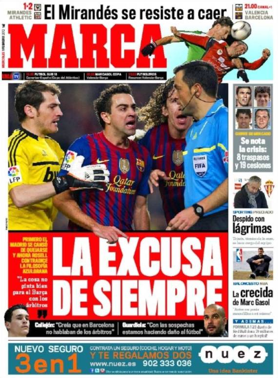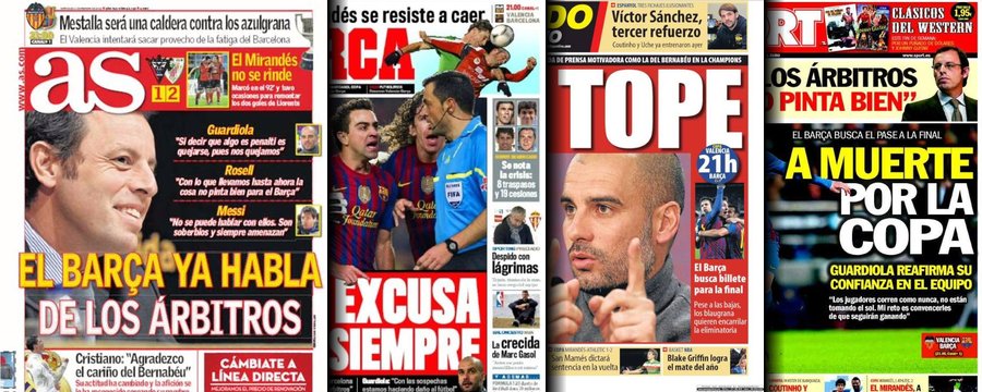 Portadas de las cuatro principales cabeceras de la prensa deportiva española.