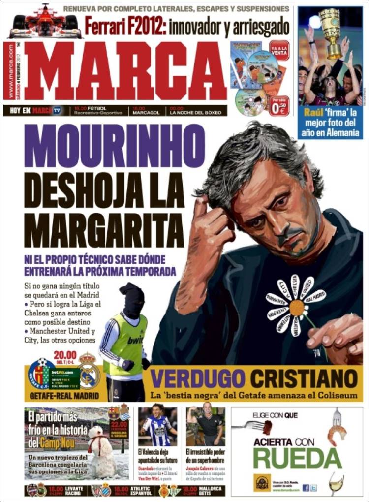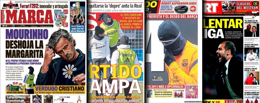 Portadas de las cuatro principales cabeceras de la prensa deportiva española.