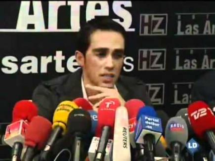 Alberto Contador ha comparecido, junto a Bjarne Riis, en una multitudinaria rueda de prensa en el Hotel Las Artes de Pinto para anunciar que no abandona el ciclismo y que llegará "hasta el final" para defender su inocencia, tras la sentencia del TAS de dos años por su positivo en clembuterol que le despoja del Tour de 2010 y del Giro de 2011, entre otros títulos.