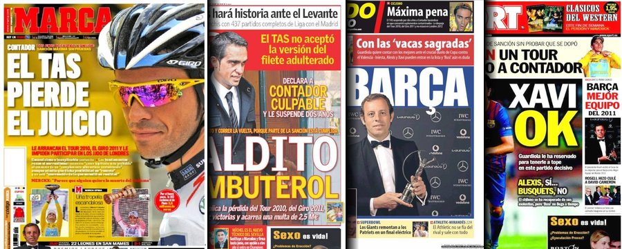 Portadas de las cuatro principales cabeceras de la prensa deportiva española.