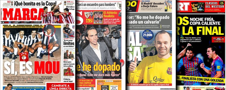 Portadas de las cuatro principales cabeceras de la prensa deportiva española.
