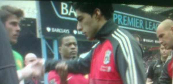 En la cita entre ambos equipos, Suárez se negó a estrechar la mano del defensa franco-senegalés del Manchester United, con quien anteriormente había tenido una trifulca que llevó a su suspensión, según indica EFE. El uruguayo debió cumplir ocho partidos de sanción por proferir insultos racistas contra Evra y fue en su retorno al terreno de juego cuando decidió negarle el saludo. Ese acto causó disgusto en el Reino Unido y motivó que el técnico del Manchester United, Alex Ferguson, dijera que el uruguayo era "una vergüenza para el Liverpool".