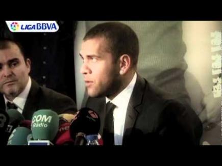 El defensa brasileño, antes de atender a los medios de comunicación en rueda de prensa, ha visionado el vídeo de promoción de su página web bien acomodado en una de las butacas de la sala de cine. Una vez finalizada la proyección, Alves ha respondido a las preguntas de los periodistas y sobre todo ha hablado de la renovación de Guardiola, el tema más candente de la actualidad blaugrana.