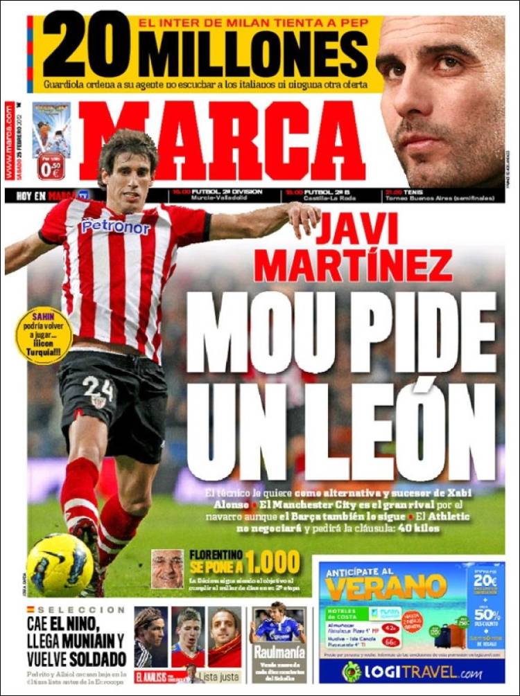 Portadas de la prensa deportiva española del 25 de febrero de 2012.