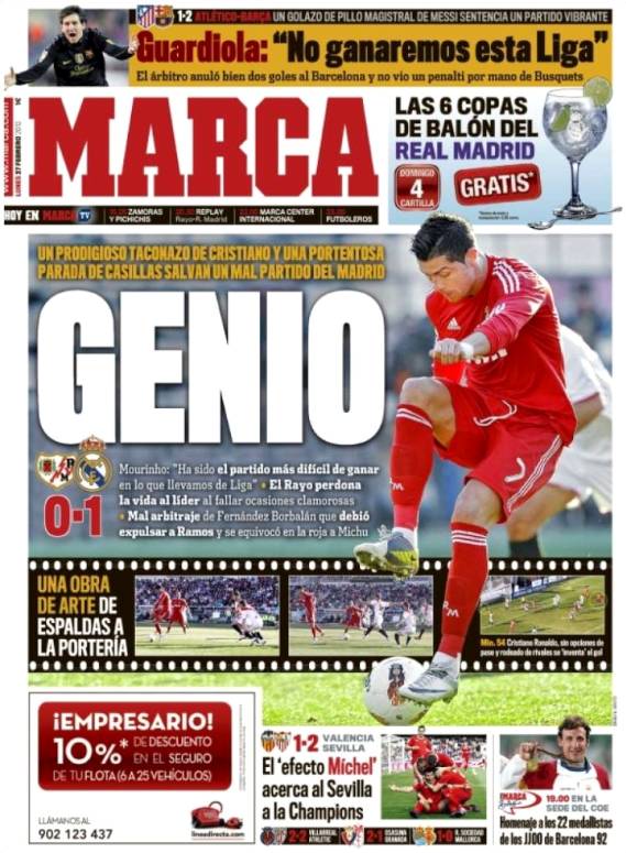Portadas de las cuatro principales cabeceras de la prensa deportiva española.