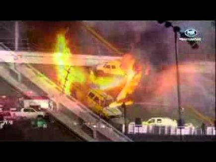 El piloto colombiano Juan Pablo Montoya perdió el control de su coche en la vuelta 160 de la prueba de las 500 Millas de Daytona, de la competición Nascar, y chocó contra un camión de secado de la pista que provocó un incendio y la paralización de la carrera.