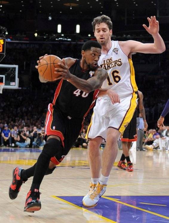 Kobe Bryant ha anotado 33 puntos y Metta World Peace lo ha apoyado con 17, mientras que Pau Gasol ha firmado un doble-doble de 11 puntos y diez rebotes, además de repartir cuatro asistencias. Por los Heat han destacado el alero LeBron James (25 puntos, 13 rebotes y siete asistencias) y Dwyane Wade, con 16 tantos y cinco pases de anotación.
