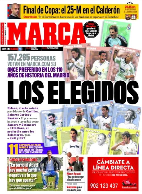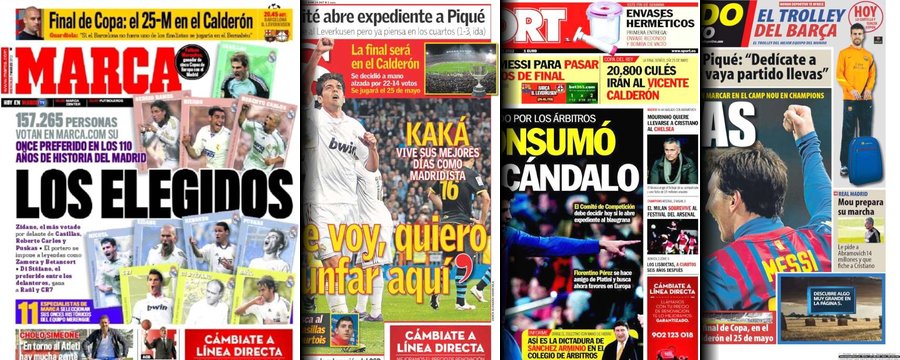 Portadas de las cuatro principales cabeceras de la prensa deportiva española.