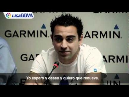 Xavi Hernández fue presentado en rueda de prensa como la nueva imagen de Garmin y reconoció que el vestuario no está preparado para un no de Guardiola.