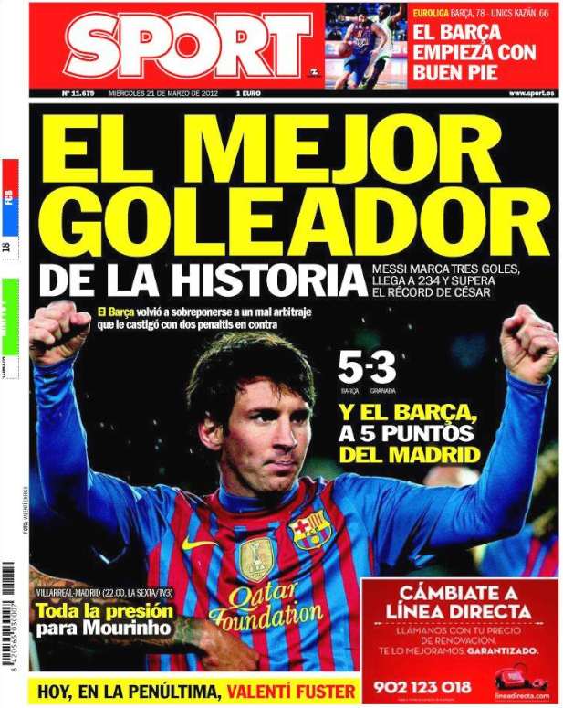 Prensa deportiva del 21 de marzo de 2012
