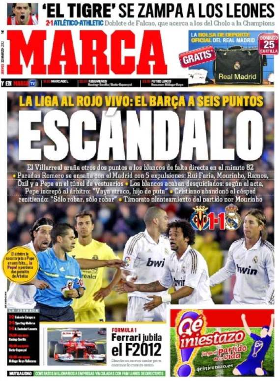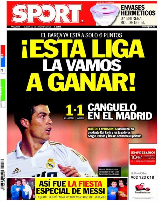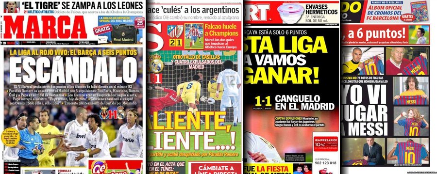 Portadas de las cuatro principales cabeceras de la prensa deportiva española.