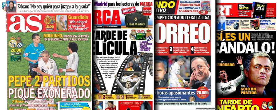 Portadas de las cuatro principales cabeceras de la prensa deportiva española.
