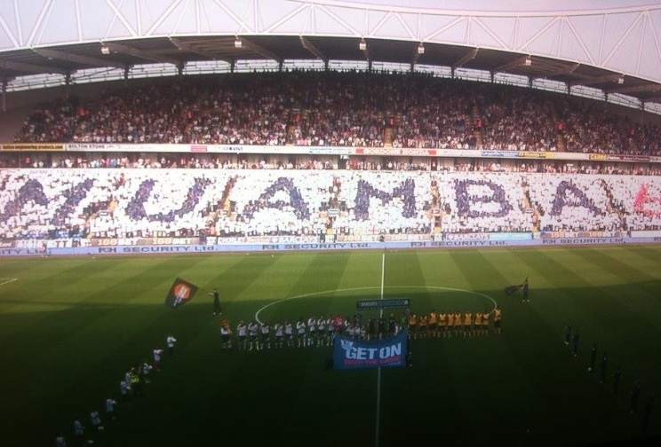 Antes de iniciarse el encuentro de la jornada número treinta de la liga inglesa, contra el Blackburn Rovers, los hinchas del Bolton mostraron un mosaico que ocupaba la tribuna lateral del estadio en el que se podía leer "Muamba 6", en referencia al dorsal que luce el jugador en el equipo que entrena el escocés Owen Coyle.
