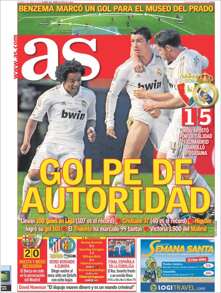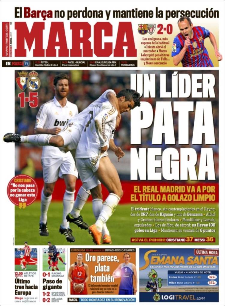 Prensa deportiva del 1 de abril de 2012