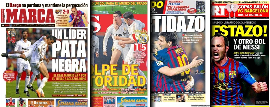 Portadas de las cuatro principales cabeceras de la prensa deportiva española.
