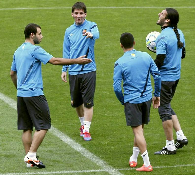 Guardiola, como suele ser habitual, ha sorprendido en su once inicial. No juegan Alexis ni Tello, que parecía haberle ganado la partida a Cuenca, que, en cambio sí juega de inicio. Xavi está recuperado de sus problemas físicos y vuelve al equipo Cesc Fàbregas tras dos choques sin disputar un minuto. Este es el once: Valdés; Alves, Piqué, Mascherano, Puyol; Busquets, Xavi, Iniesta; Cesc, Cuenca, y Messi.