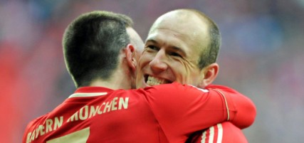 Bayern: Neuer; Lahm, Boateng, Badstuber, Alaba; Kroos, Luiz Gustavo; Robben, Müller, Ribery; y Gómez