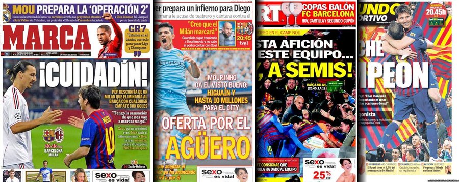 Portadas de las cuatro principales cabeceras de la prensa deportiva española.