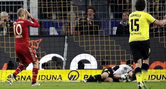 El Dortmund, entonces, trató de quitarle revoluciones al partido, lo que consiguió sólo por momentos ante un Dortmund que se mostraba pletórico de confianza y que lograba neutralizar en buena parte los esfuerzos que por las bandas hacían el francés Franck Ribery y el holandés Arjen Robben.