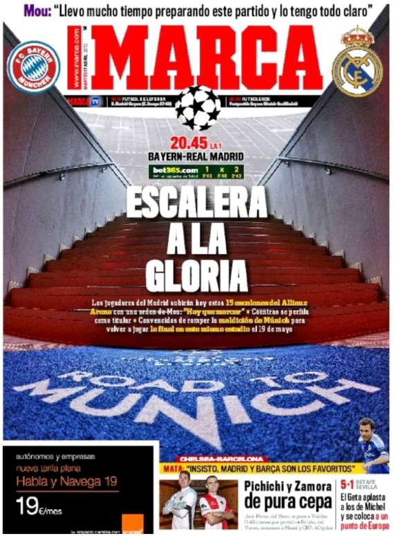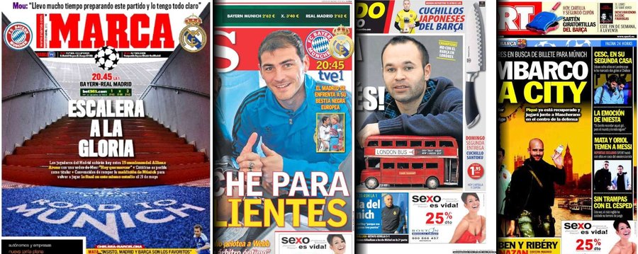Portadas de las cuatro principales cabeceras de la prensa deportiva española.