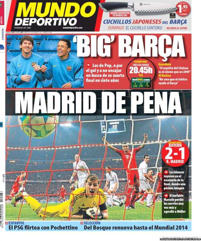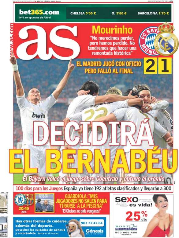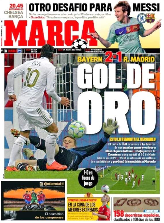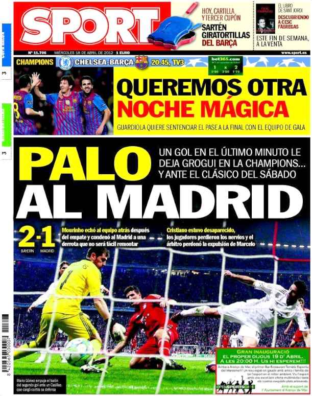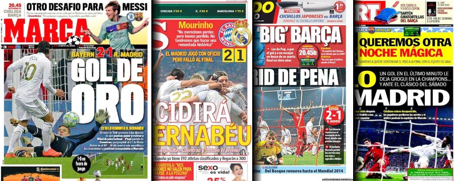 Portadas de las cuatro principales cabeceras de la prensa deportiva española.