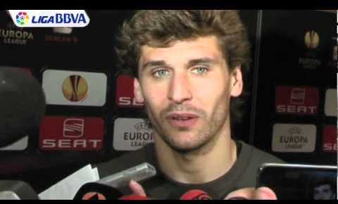 El delantero riojano se muestar encantado por haber marcado el tanto que suponía el 3-1 ante el Sporting y clasificaba al Athletic para la final de la Liga Europa.