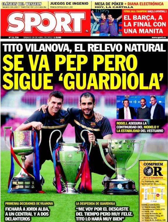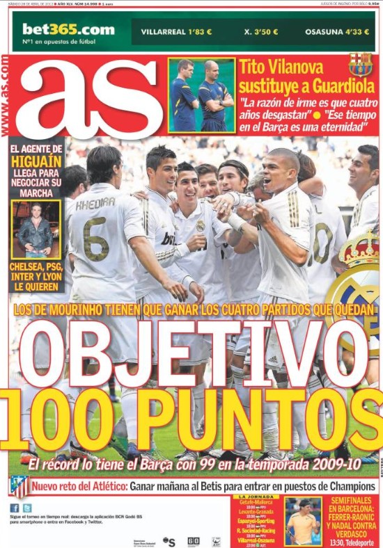 Portadas de la prensa deportiva del sábado 28 de abril de 2012.
