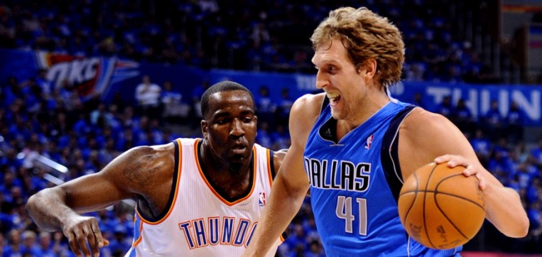 Nowitzki, con 25 puntos, cinco rebotes y dos asistencias, volvió a ser el líder encestador de los Mavericks, actuales campeones de liga, que en las pasadas finales de la Conferencia Oeste ganaron a los Thunder. El escolta Jason Terry, como sexto jugador, aportó 20 puntos y repartió cinco asistencias, pero esta vez no pudo conseguir los tantos decisivos, que cayeron del lado de los Thunder.