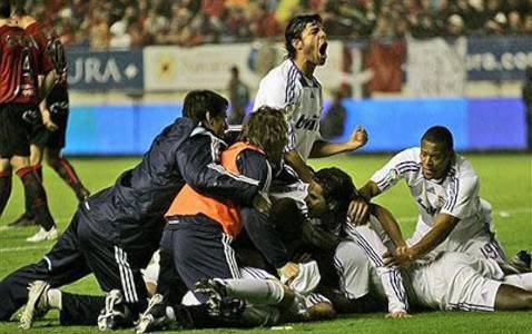 Sin embargo, el Real Madrid ya sabe lo que es celebrar el título de Liga en territorio hostil. Sin ir más lejos, el último alirón blanco fue en el Reyno de Navarra, en 2008, uno de los estadios que peor reciben al Real Madrid. Entonces, un tanto de Higuaín en el último minuto del encuentro sirvió a los blancos para conquistar el último título liguero, que celebraron después con un histórico pasillo al Barcelona.