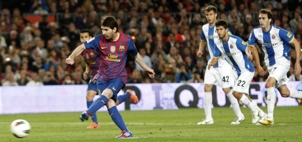 Messi firmó los cuatro del Barça al Español, dos desde el punto de penalti. El portugués Cristiano hizo el primero, también de pena máxima, para iniciar la remontada del Real Madrid en Granada (1-2). Suma 45 dianas, doce de ellas con lanzamientos de penaltis.