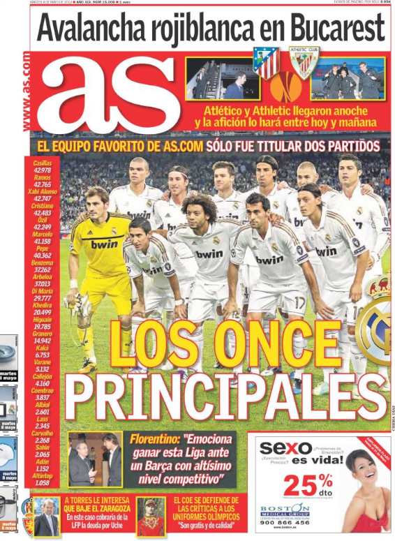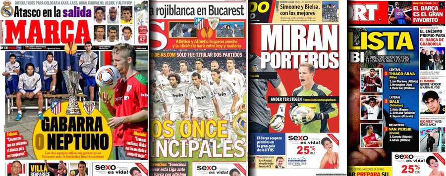 Portadas de las cuatro principales cabeceras de la prensa deportiva española.