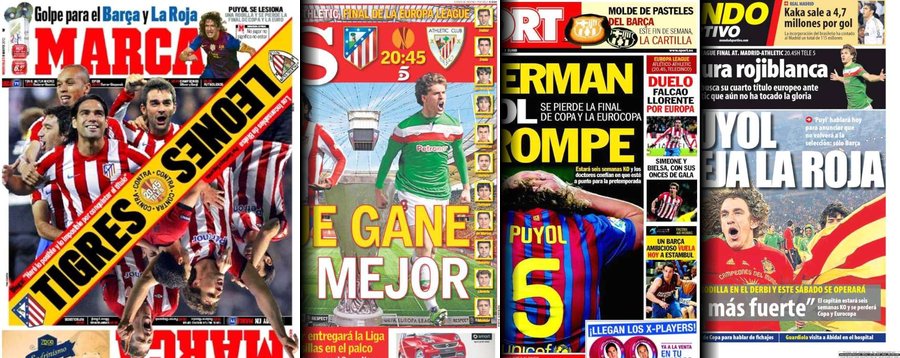 Portadas de las cuatro principales cabeceras de la prensa deportiva española.